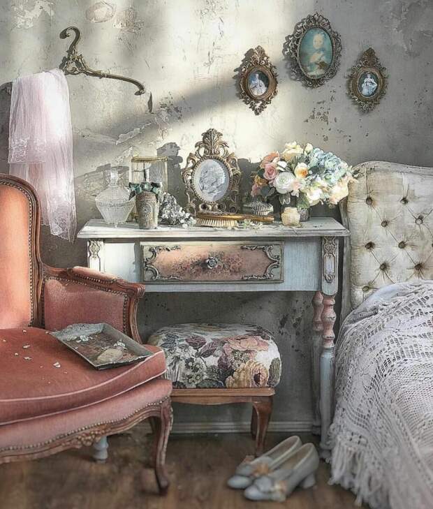 Применение шебби-шика в интерьере наполнит дом небрежной романтикой и изяществом. Направление напоминает кукольный домик и имеет схожие черты с французским провансом. В создании дизайна участвуют старинные или искусственно состаренные предметы, которые создают особую атмосферу.