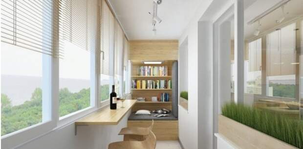 Вопреки стереотипам бар для бутылок в квартире может располагаться не только в жилых комнатах. На застекленных балконах и лоджиях все чаще встречаются подоконники, переделанные в столешницы. Если дополнить их маленьким напольным холодильником для напитков, получится настоящий бар со стойкой. Сидя на таком балконе, можно любоваться закатом, смотреть на ночной город или наблюдать за птицами.