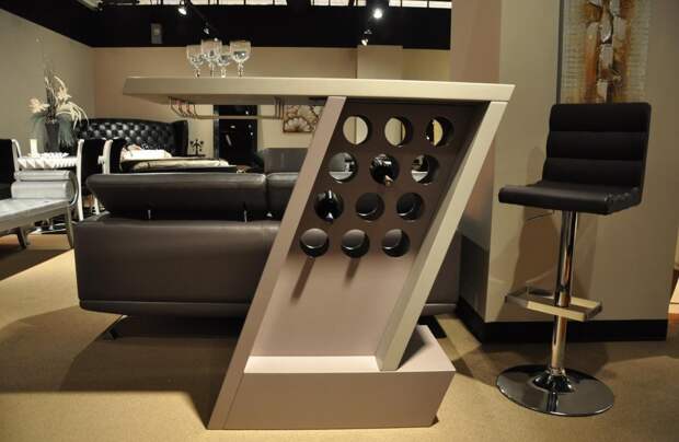 Очень нестандартный вариант, который выбирают неординарные личности. Такой мини-бар впишется в интерьер, оформленный в стиле хай-тек. Для изготовления понадобятся: