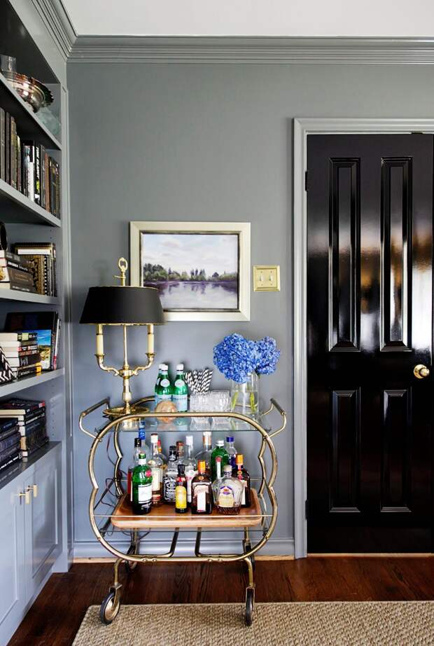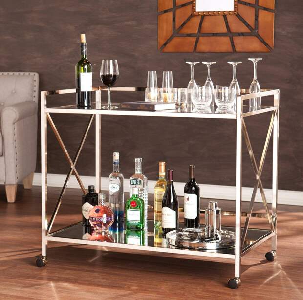 Еще один актуальный вариант для небольшого помещения – компактный передвижной мини-бар, который, при необходимости освободить пространство, можно убрать в кладовку, на балкон или просто отодвинуть в угол.