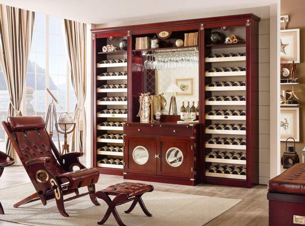 Если хозяин квартиры – частый гость заведений с хорошим вином, который решил обустроить дома свой бар, ему нужно учитывать особенности хранения напитка. Для его сохранности нужно приобретать особые шкафчики или другие изделия, которые позволят держать бутылки под небольшим углом (5 градусов), а также не будут пропускать солнечный свет.
