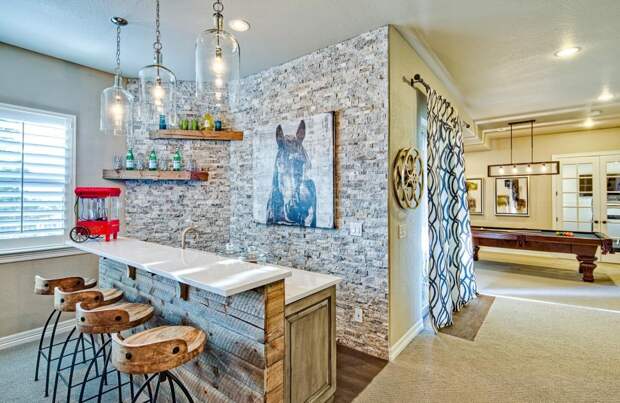 С годами бары получили широкое распространение по всему миру. Их разнообразие потрясает воображение: пивные, безалкогольные, спортивные, вегетарианские, бары-варьете и многие другие. Несмотря на огромный выбор заведений, некоторые владельцы квартир и загородных коттеджей обустраивают собственные бары дома. Современное обилие идей и материалов позволяют это сделать даже тем людям, которые не сильны в ремонте. Далее мы рассмотрим варианты размещения домашнего бара для напитков, оборудование для него и оригинальные идеи дизайна.