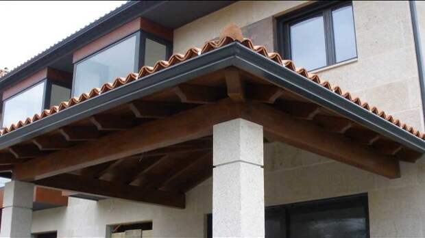 Например, к последнему подойдет козырек из ковки или дерева или же сочетание этих материалов, дополненное резными узорами по старинным русским традициям. Готику можно воплотить, используя металлические типы кровли. Классика будет выражена при помощи черепицы из металла, а хай-тек можно реализовать при помощи стекла или поликарбоната.
