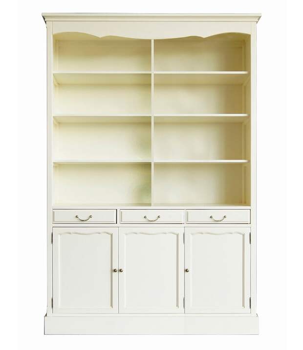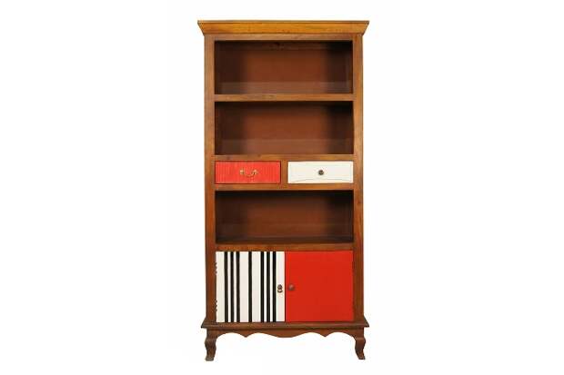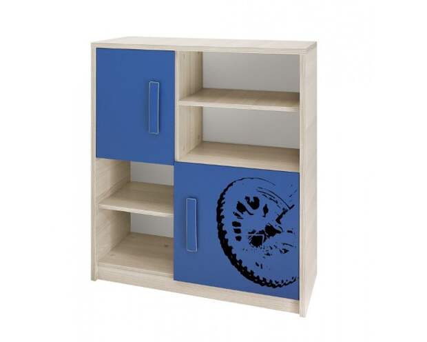 Изделие представляет собой конструкцию, состоящую из закрытых боксов-ящиков и открытых полочек. Такие модели обычно не имеют сплошной задней стенки, могут использоваться для зонирования помещений.