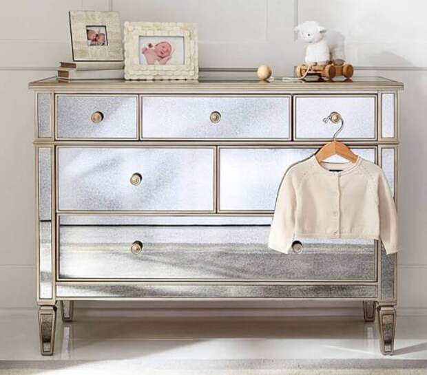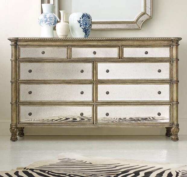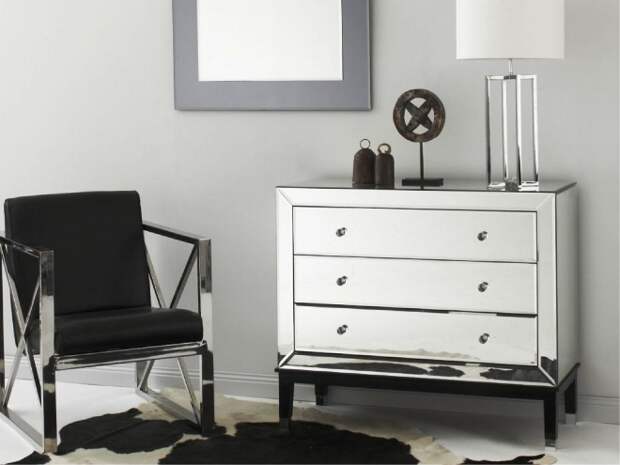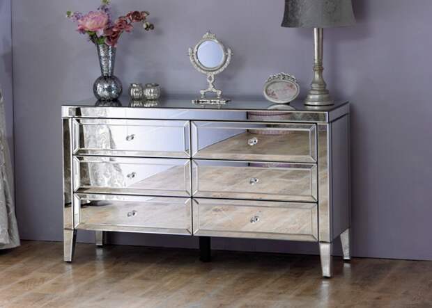 Дизайнеры предлагают несколько вариантов, где можно поставить комод с зеркалом в гостиной: в обеденной зоне, возле мягкого уголка. В квартире-студии длинный зеркальный комод поможет визуально разграничить зоны кухни и гостиной.