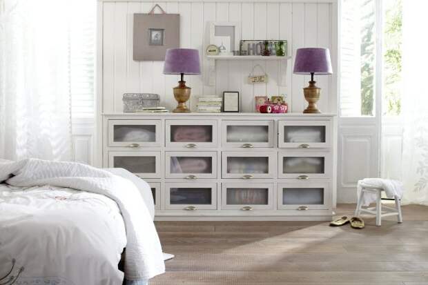 Чаще всего комод встречается в спальне. Компактная мебель с множеством ящиков позволяет удобно расположить постельные принадлежности, комплекты белья, мелкие вещи. Для комнаты отдыха изготавливается мебель с ящиками разных размеров. Нижние ящики более глубоки, они удобны для хранения пледа или запасной подушки. Верхние мельче – в них раскладывают нижнее белье одним слоем так, что всегда все вещи на виду.