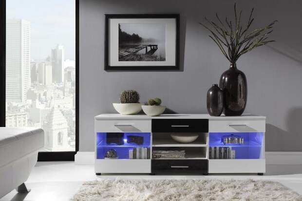 Центральную комнату квартиры обустраивают более нарядно, чем остальные помещения. Тумбы декоративного вида подбирают под стиль интерьера. В классический дизайн органично вписываются дубовые изделия с изящной резьбой. А для интерьера хай-тек подходят комоды простых форм, оснащенные электронными доводчиками или контролем открывания дверок. Удобная мебель в зале выполняет несколько функций: