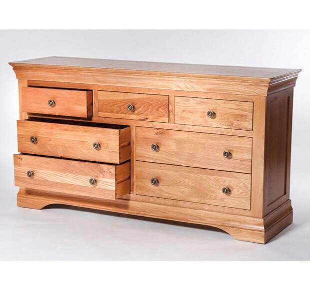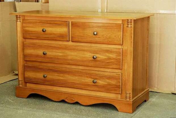 Классикой мебели можно считать комоды из различных сортов древесины (сосна, липа, дуб, береза). Богатая резьба – традиционный вариант отделки. Более современные техники декора – инкрустация, интарсия, обжиг, отбеливание, вощение. Оригинальная идея придать мебели эффект старины – искусственно состарить. Производители предлагают модели нескольких параметров:
