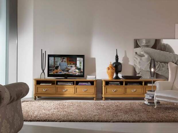 Классические тумбы с естественной окраской древесины чаще всего выбирают для меблировки гостиных, спален, детских. При выборе моделей обязательно учитываются габариты помещения. В просторной детской незаметно и уютно смотрятся изделия из светлых пород древесины (орех, осина, беленый дуб).