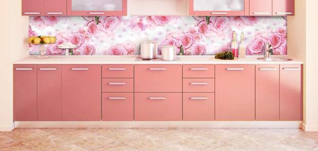 Не менее изящно в интерьере квартиры будут выглядеть букеты из роз на виниловых обоях. Они органично смотрятся в любом цвете и позволят создать красивый общий фон в помещении. Материал имеет два слоя: флизелин/бумагу и ПВХ. Полимер, которым покрывают основу, позволяет мыть обои с использованием специальных средств. Удачное дизайнерское и практичное решение — выбрать этот вид отделки для оформления кухни.