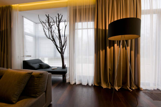 В современных интерьерах все чаще применяются двойные занавески. Они создают интересные образы с использованием двух основных тонов. Сочетание тюля и портьер позволяет менять освещенность жилища, делая его комфортным и удобным. В любой комнате комбинированные варианты будут выглядеть гораздо интереснее, чем отдельные.