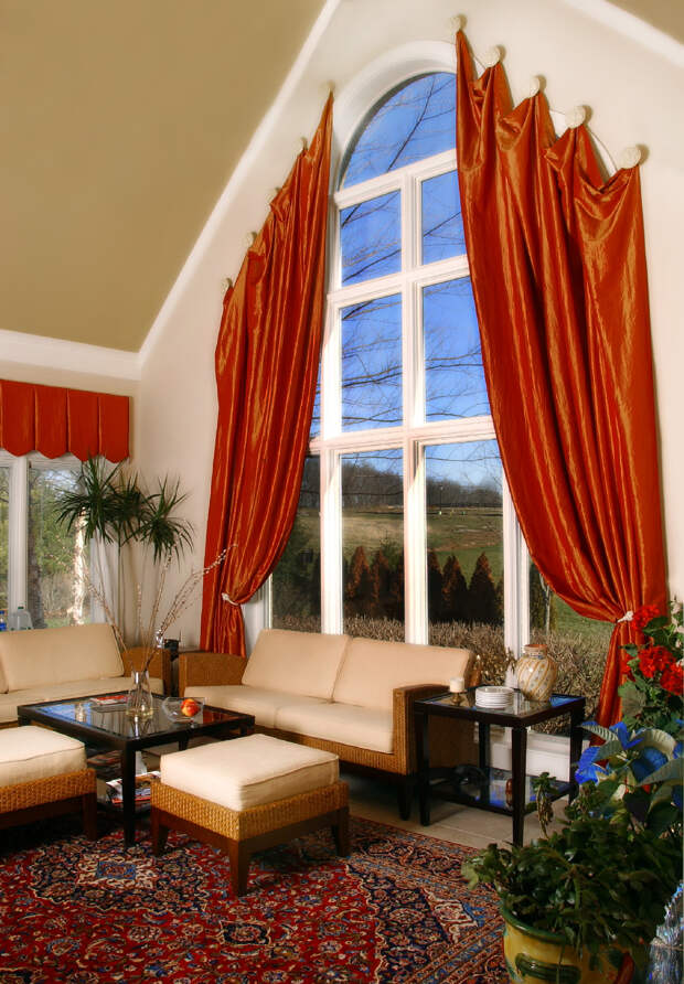 Выбор драпировок зависит от величины окна и стиля комнаты: