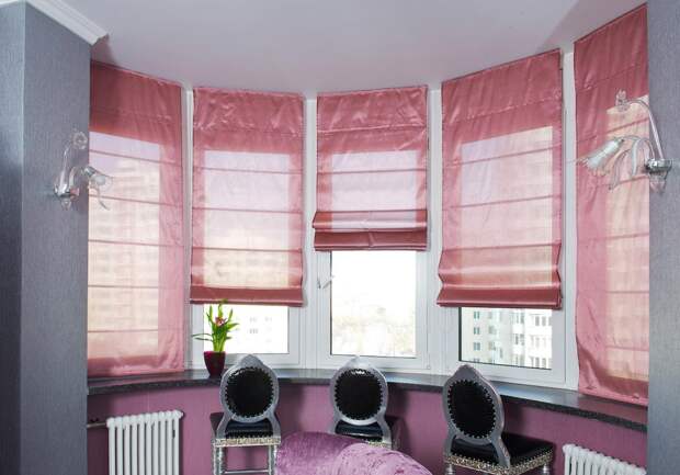 Эркер представляет собой композицию, состоящую из нескольких окон, которые выступают за пределы комнаты. Нельзя нарушать единство конструкции, поэтому обычно используется пара штор, расположенных по обе стороны. Для правильной расстановки акцентов эркер оформляется в виде театрального занавеса.