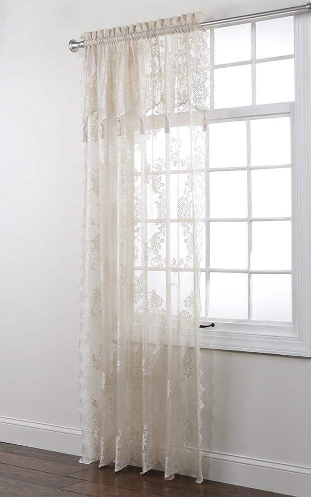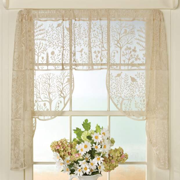 Кружевные портьеры с изящными рисунками вновь в моде. Воздушные полотна привносят мягкость и нежность в помещение, используются в интерьере кухонь, гостиных, спален. Кружевом можно задекорировать комнату в средиземноморском стиле или прованс.