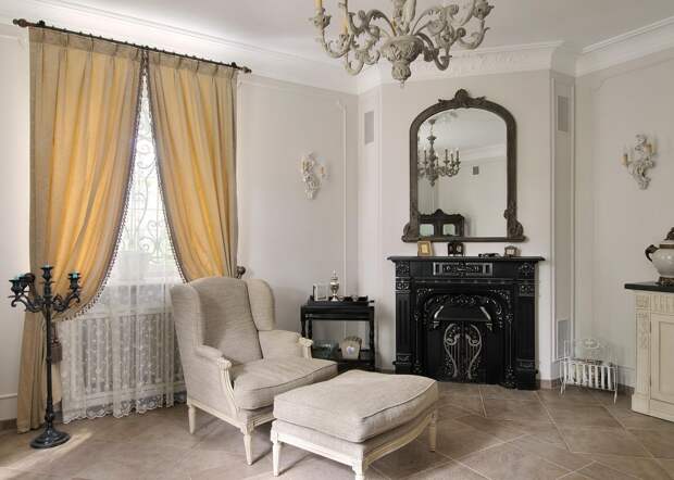 Изделия гармонично выглядят в классических интерьерах. При длине ниже подоконника занавеска будет полностью прикрывать окно, а внизу сформируются роскошные фестоны.