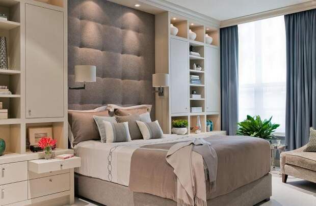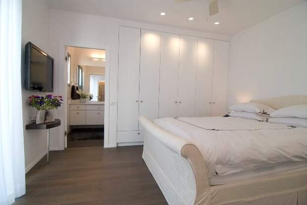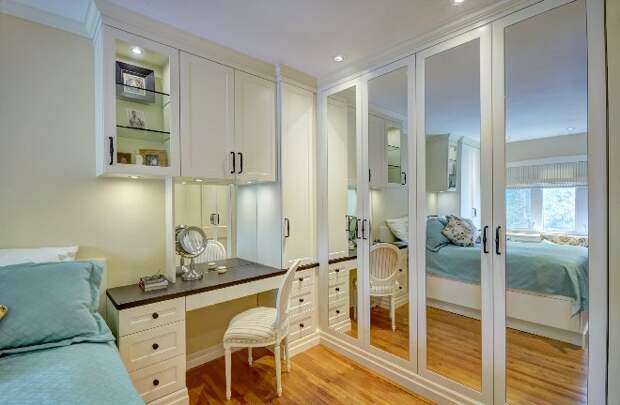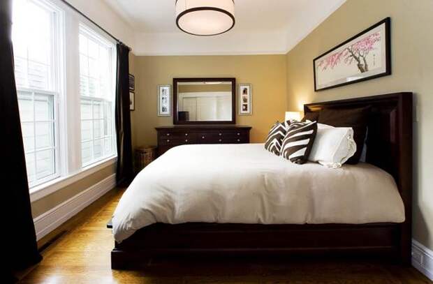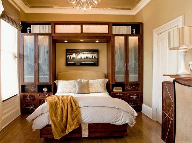 Чем меньше в спальне мебели, тем лучше (проще ходить, помещение кажется просторнее). Поэтому нужно принимать обдуманные решения по установке крупногабаритных вещей. Или же пользоваться многочисленными уловками, которые изобретены именно на этот случай.