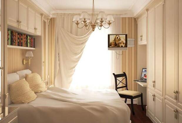 Небольшая спальня — это привычное явление не только в хрущевке, но и в новостройках экономкласса. Неудачный вариант, если помещение вытянуто относительно одной своей стороны. Дизайн узкой спальни представляет собой непростую задачу, ведь обязательным элементом является кровать, которая должна там органично смотреться.