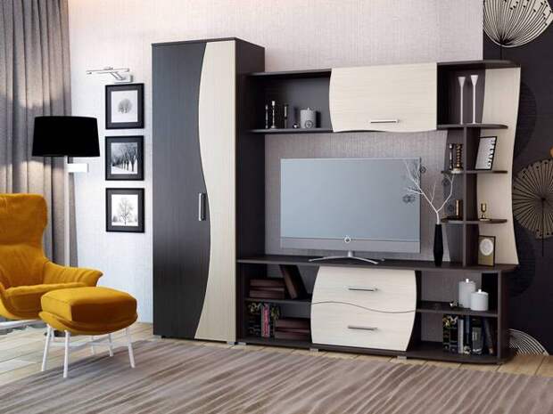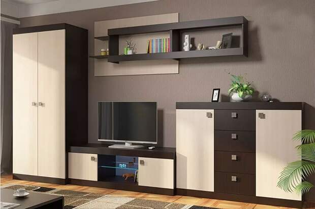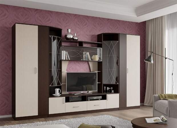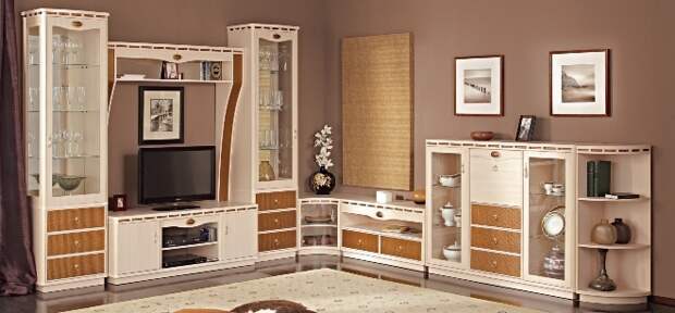 Прежде чем подобрать мебель, необходимо ориентироваться на особенности различных интерьерных стилей. Чтобы стенки органично дополняли обстановку гостиной, нужно учитывать не только форму, материалы изделий, но и цветовую гамму.
