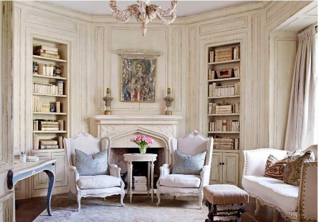 Полки играют как декоративную роль (для размещения сувениров, фотографий, свечей), так и вполне функциональную (для хранения книг, журналов, плетеных корзин).