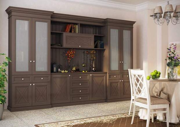 При выборе модели надо определиться с ее функцией. Если витрина приобретается для хранения хрусталя, дорогих столовых сервизов, то целесообразно приобрести застекленный сервант со встроенной подсветкой и большими фасадами.