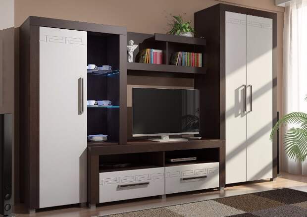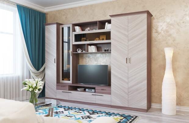 Подобный предмет интерьера – настоящий хит среди стенок для гостиных. Основные достоинства изделий: