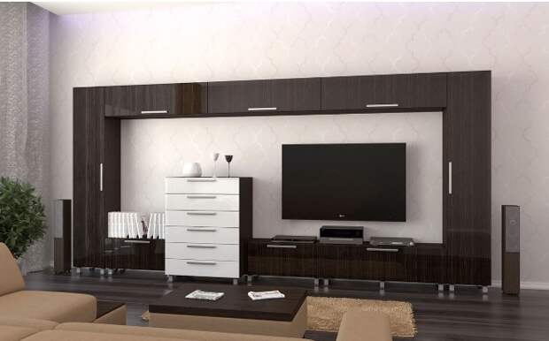 Мебельная стенка длительный период времени не теряет актуальности и не выходит из моды. Изменяются только материалы, дизайнерские конструкторские решения. Современную стенку нельзя считать только «системой хранения» – это важный элемент интерьера в гостиной любого стиля.