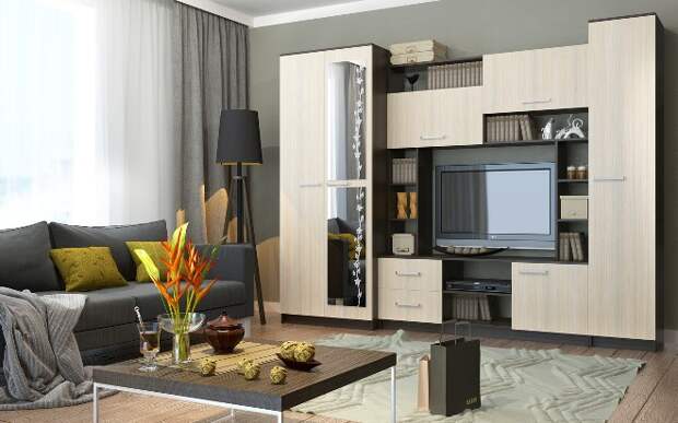Перед покупкой мебели важно уточнить габариты гостиной (например, высоту потолка, ширину стен).