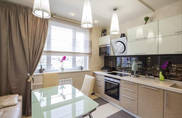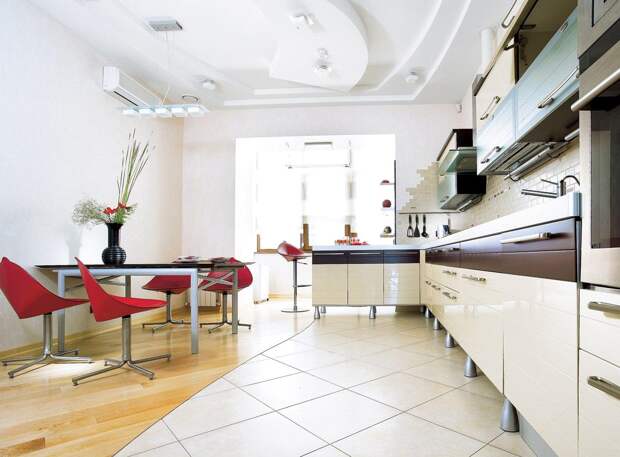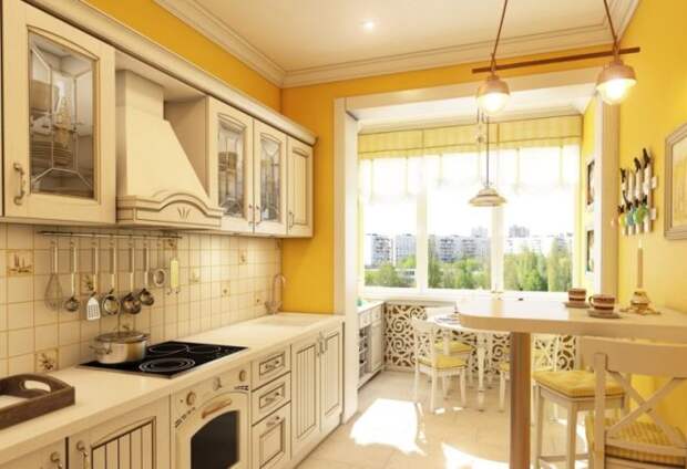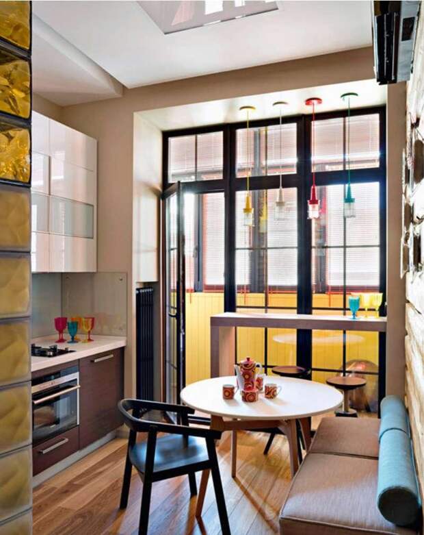 Прекрасная возможность расширить (зрительно и физически) кухонное пространство – объединить балкон и комнату.