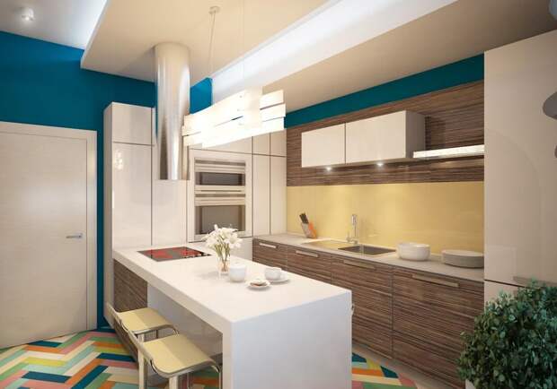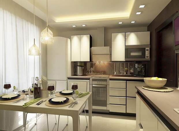 Кухня в тринадцать метров позволяет реализовать разные способы планировки. Дизайнеры предлагают пять стандартных вариантов: