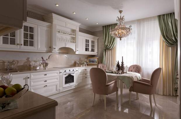 Меблировку помещения лучше всего выбирать исходя из его предназначения. Не секрет, что кухни в первую очередь используют для приготовления блюд и принятия пищи. Однако надо учитывать, что некоторые могут ограничиться чашкой утреннего кофе, а любителям кухонных посиделок нужен уголок для релакса с диванчиком, овальным столом и телевизором.
