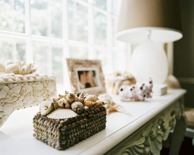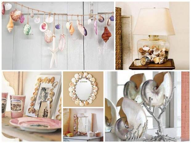 В любом помещении найдутся места для предметов, украшенных раковинами. Этот природный материал красиво смотрится не только на вещах, но и великолепно подходит для отделки поверхностей. Морские ракушки в интерьере привносят в помещение нотки свежести и уюта.