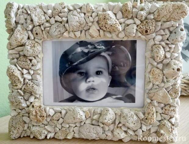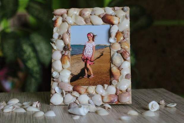 Оригинальная фотография – лучшая идея сохранить воспоминание об отпуске. Детвора очень любит собирать камушки и ракушки на берегу моря. Каждый ребенок с восторгом примет идею оклеить ими фоторамку.