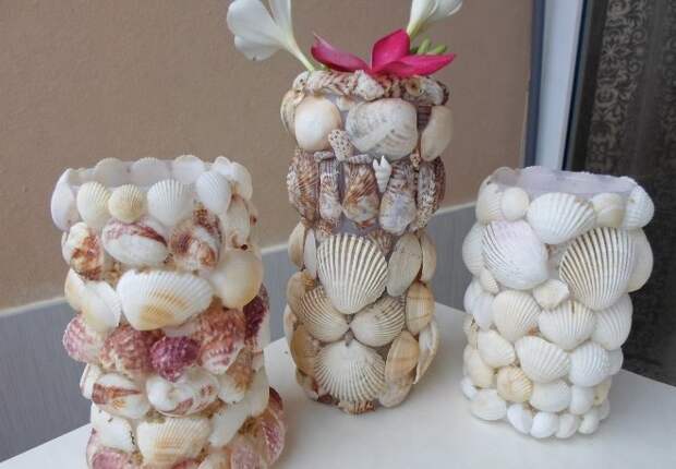Раковины – универсальный природный материал, поскольку он годится для декорирования предметов любых размеров и форм. Оригинальное сочетание ракушек, бусин и цветных стеклышек придает изделиям необыкновенный вид.