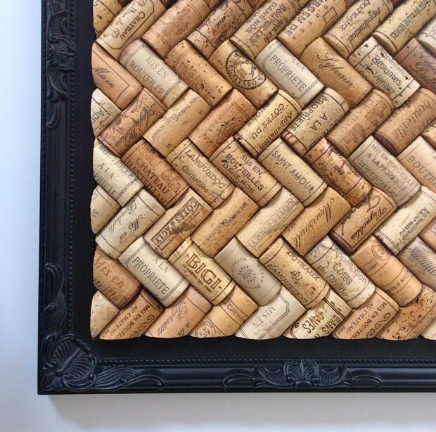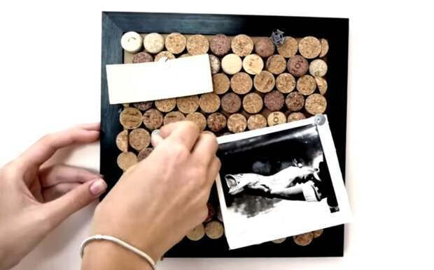 Интересный самодельный вариант для творческих натур. Для изготовления понадобятся лишь основа, клей и много винных пробок. Их можно расположить по-разному: горизонтально, вертикально, квадратиками и кружочками. На такую доску удобно крепить фотоснимки и записки на канцелярские кнопки.