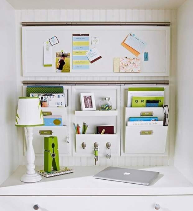 Это вариант для деловых людей, которые любят организовывать свое пространство. Такое распределение документов, бумаг и канцелярских принадлежностей удобно по той причине, что стол может всегда оставаться чистым. Доска-органайзер, как правило, имеет поверхность для записей и отсеки для нужных вещей. Может быть цельным изделием или состоять из нескольких частей.