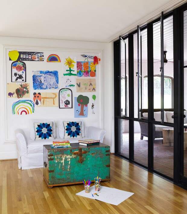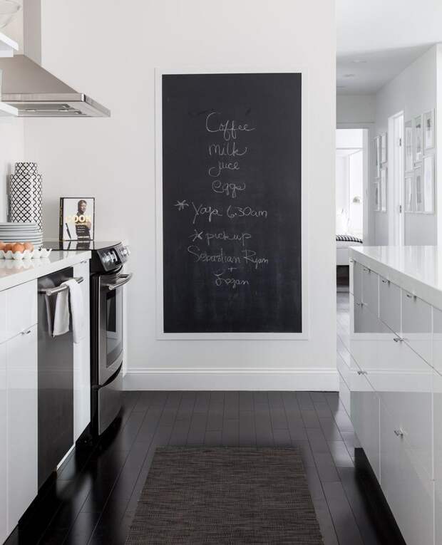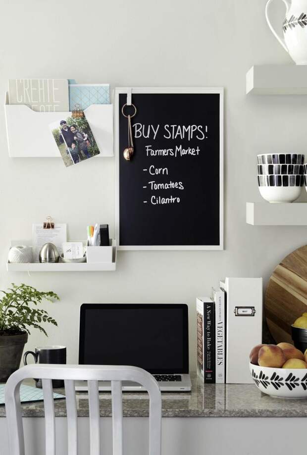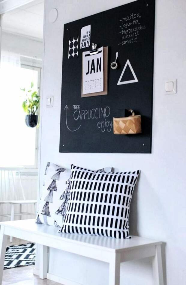 Доска для заметок может быть настенной или напольной, на поверхности можно писать мелом или клеить к ней стикеры – все это остается на усмотрение хозяина дома.