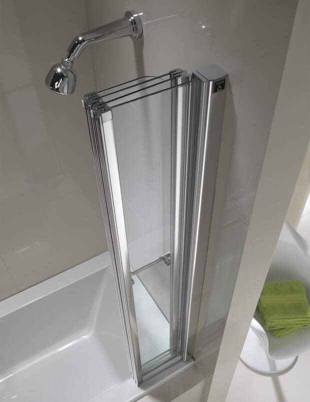 - сделать сдвижной, чтобы при выходе из ванной человек собирал конструкцию в единое целое;