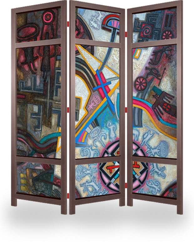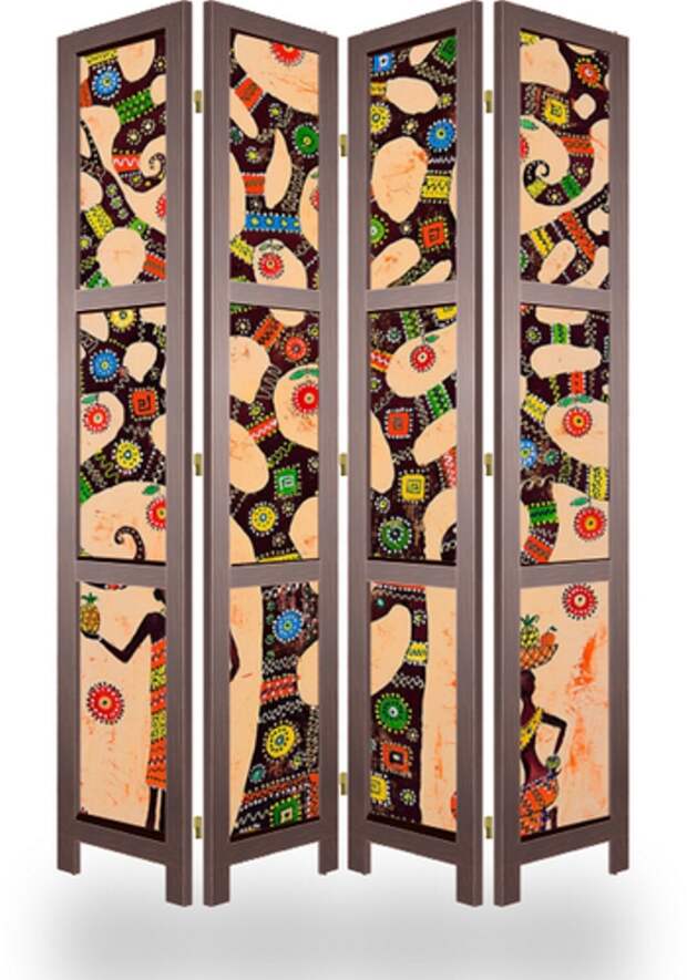 - ширма с каркасом из дерева и заполнением из соломы, украшенная этническими рисунками;