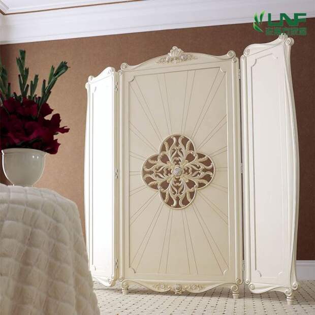 Утонченная классика – прекрасный вариант для спальни. Ширма в таком исполнении изготавливается в приятных и спокойных оттенках, она не только разделит помещение на функциональные зоны, но и выполнит практичную функцию. Классическая модель с зеркалом будет идеальным решением для спален, где нет места под установку туалетного столика или шкафа-купе с зеркалом во весь рост.