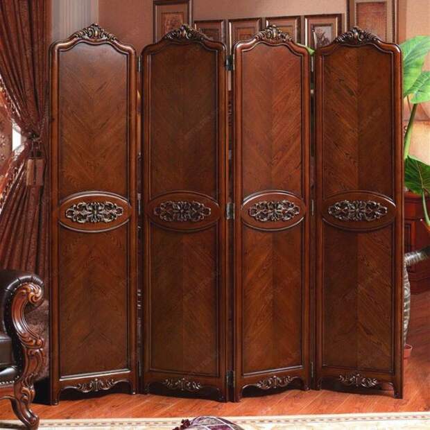Первое появление ширмы датируется 7 веком в Китае. Тогда модели были изготовлены из натурального дерева и не имели заполнения. Современные деревянные изделия состоят из нескольких створок – от 2 до 4. Зачастую модели заполнены тонкими деревянными рейками, но при этом ширма не просвечивается. Изделия из дерева можно поделить на несколько видов: