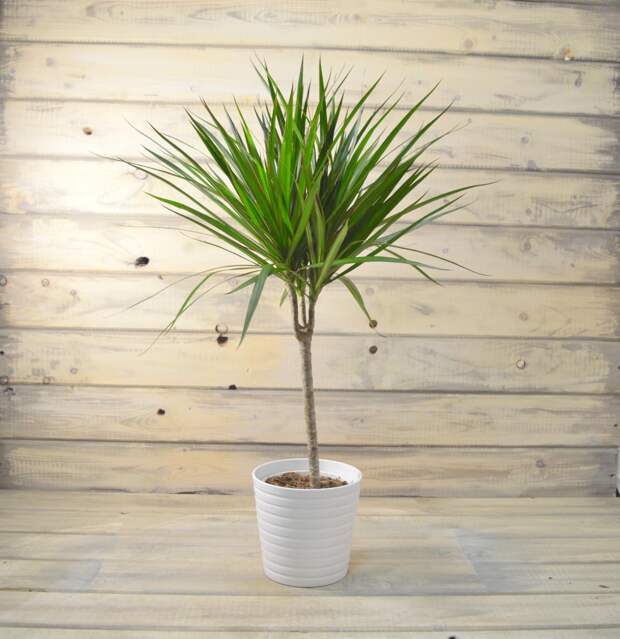 - Драконовая. Характеризуется деревянистым стволом. Листья длинные, серо-зеленого цвета, собраны в пучок. Может вырастать до 3 и более метров. Из-за внешнего сходства очень часто называют пальмой. Абсолютно не аллергичный вид, поэтому может использоваться для озеленения спален и других жилых комнат.