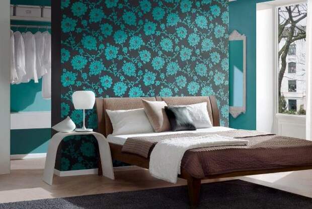 - гарантированно сочетаются в дизайне обои для спальни 2 видов цветов;