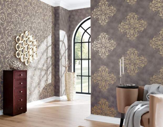 Не надо быть специалистом, чтобы грамотно выбрать обои двух или даже трех видов, воспользовавшись подобным предложением на рынке. Некоторые дизайнерские дома пошли дальше, предлагая расширенные коллекции, включающие не только обои разных фактур (жидкие, бумажные и т.д.), но и интерьерные краски и текстиль.