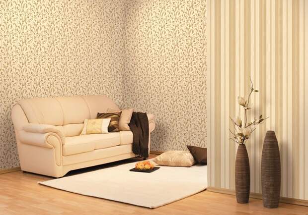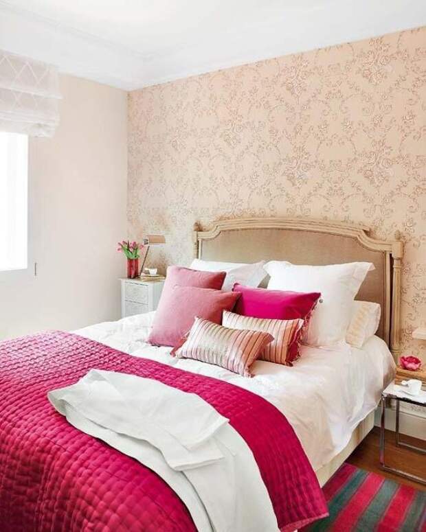Самым популярным для спальни является сочетание обоев теплых тонов. Этот вариант подойдет для комнаты, выходящей окнами на любую сторону света. Если в комнате темно, не следует в качестве основы брать насыщенные оттенки.