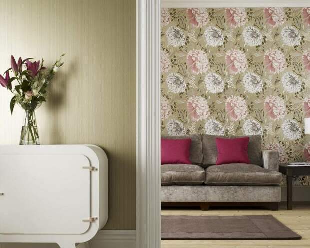 Обои с рисунком сочетать между собой сложнее всего. Если они являются компаньонами, то, скорее всего, фон или принт перекликаются. Если же клеить приходится своими руками, то следует придерживаться следующих принципов: