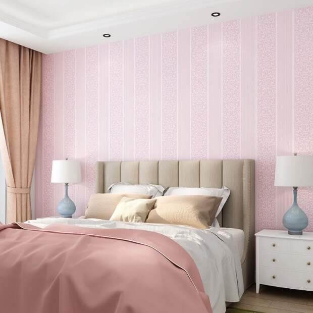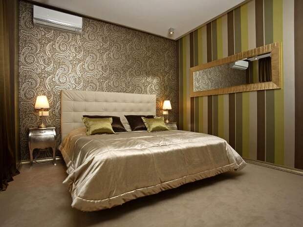Спальня – комната не публичная, она воплощает в себе представления о личном пространстве. Посторонних там не бывает, а главная функция интерьера, помимо размещения мебели для отдыха – обеспечение релакса. Сочетание обоев в спальне часто используется при оформлении стен.