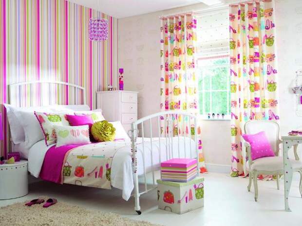 - для детской рисунки подбираются одного направления, к примеру, мелкий цветок или крупный на всю стену;