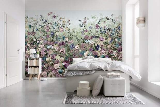 - рисунки обоев поддерживают одну тему или находятся в одном стиле, например, не стоит сочетать нежную акварельную технику и жесткую геометрию;