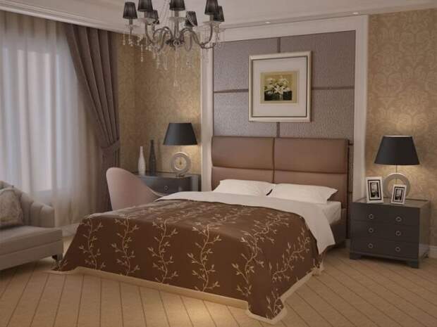 Интерьер спальни предназначен для отдыха, спокойного сна, он создает атмосферу комфорта и уюта. Поэтому в данной комнате, так же, как и в гостиной, не рекомендуется применять авангардные, излишне яркие решения. Есть смельчаки, которые клеят пестрые, контрастные обои. Но и представления об отдыхе у таких людей другое. Удачным вариантом считаются обои спокойных, приятных глазу, неагрессивных расцветок.