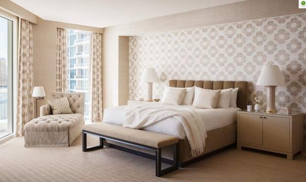 При комбинации обоев для спальни, учитывается много нюансов: есть общепринятые правила и решения, которыми не стоит пренебрегать.
